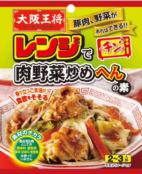 「大阪王将 レンジで肉野菜炒めへんの素」って??