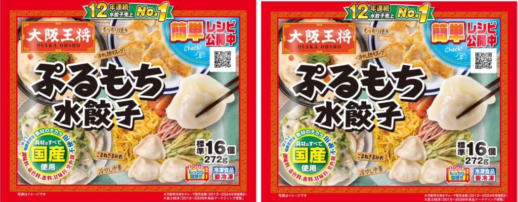 焼き餃子だけでなく、水餃子もいかがですか?「大阪王将 ぷるもち水餃子」は、独自の配合で実現した「ぷるぷる・もちもち」の皮が自慢です。煮崩れしにくいので、お鍋の具材やスープのメインにもぴったり。レンジで温めるだけでもおいしく召し上がれますよ。