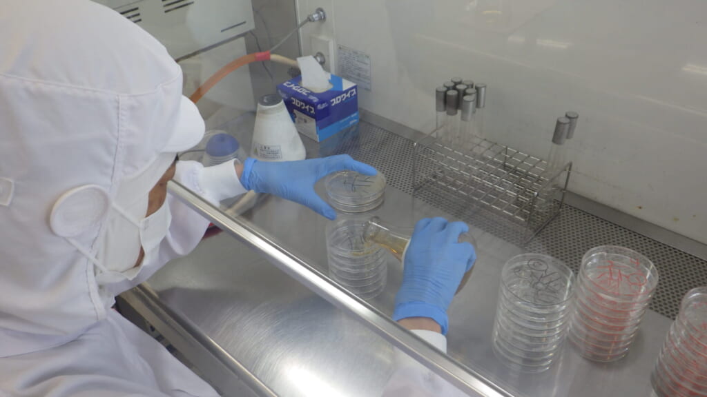 ここでいう微生物検査とは、食品の安全性や食中毒の原因となる微生物の有無、衛生状態を確認するために菌数を調べることです。食品が腐ったり、それを食べてしまってお腹を壊したりする大部分は、微生物が原因となって起こります。お客様が安全に安心して食べられるよう定期的に検査をし、合格したものだけがお店に並びます。