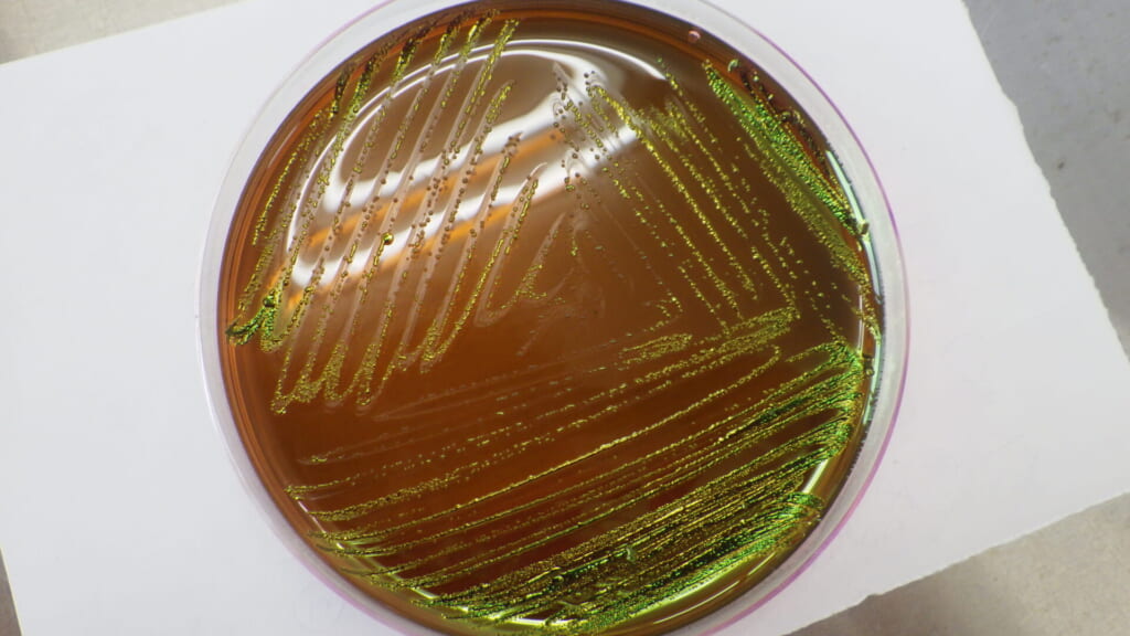 イートアンドの製品検査では、選択培地を用いてこの黄色ブドウ球菌が食品中に存在するか否かを確認しております。