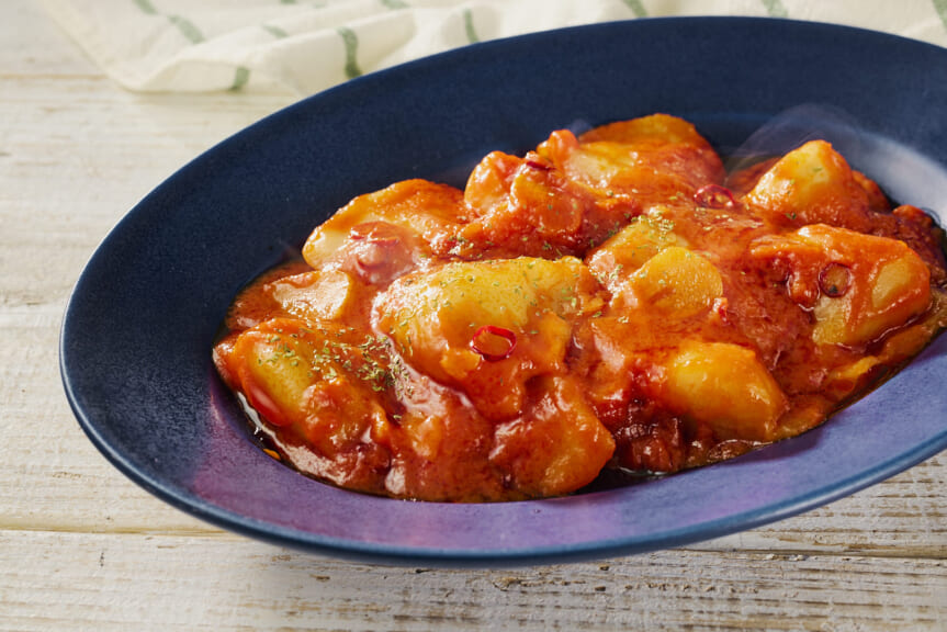 アラビアータのペンネのかわりに、水餃子を使ったレシピ。ラビオリのような食感なのでトマトソースとの相性も◯。トマトジュースを使うことで手軽にできます。バジルを添えるとさらにボジョレーに合います。