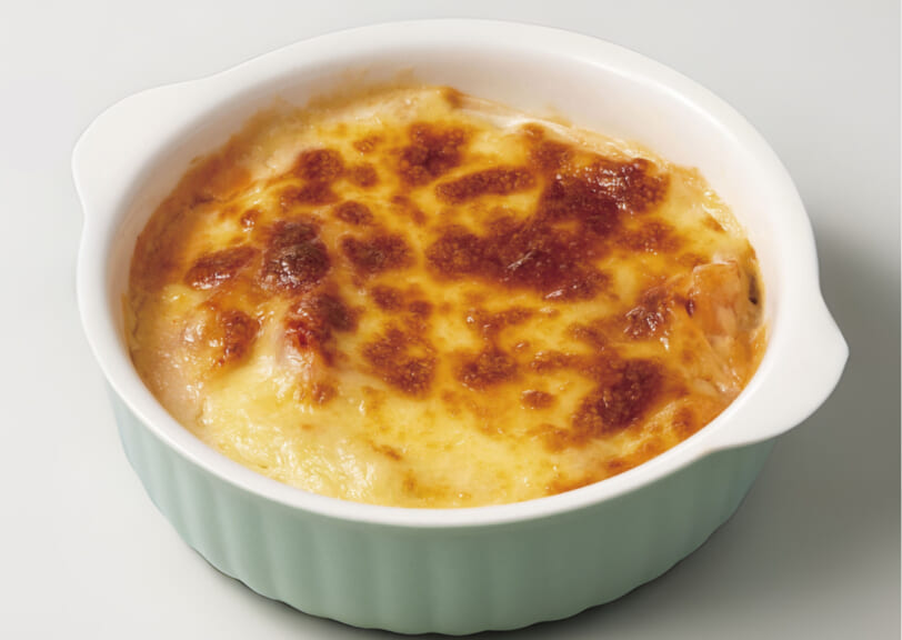 餃子にホワイトソースをかけて、とろけるチーズをのせるだけで、簡単にラザニアがつくれちゃいます。チーズがボジョレーの果実味と絶妙にマッチします。