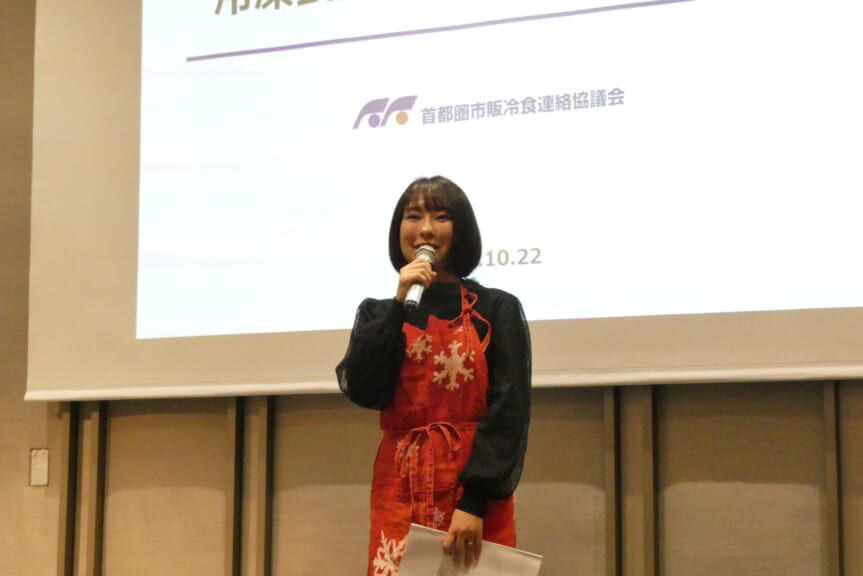 冷凍食品の利用によって「時産」。時間を産み出し、その余裕でいろいろなことができて生活が豊かになる、という説明でした。「子どもとゆっくり遊ぶ、勉強をみてあげる、夫婦でのんびり、エクササイズや趣味等々、あなたが今日、本当にやりたいことができる。より良く生きるための戦略として選ぶ味方」(冷凍子ママ)が冷凍食品、冷凍活用。同じ子育て世代の皆さまからの熱い視線がありました。