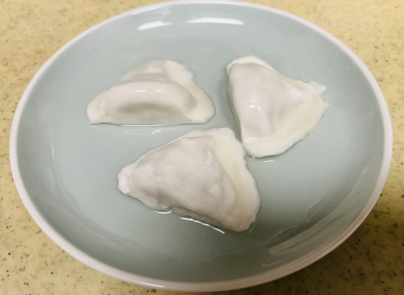 - 凍ったままのぷるもち水餃子に大さじ1杯の水をかけて、レンジで600w約1分10秒加熱。