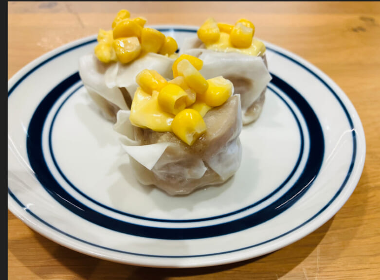 - 温めたチーズしゅうまいにコーンをのせたら完成!