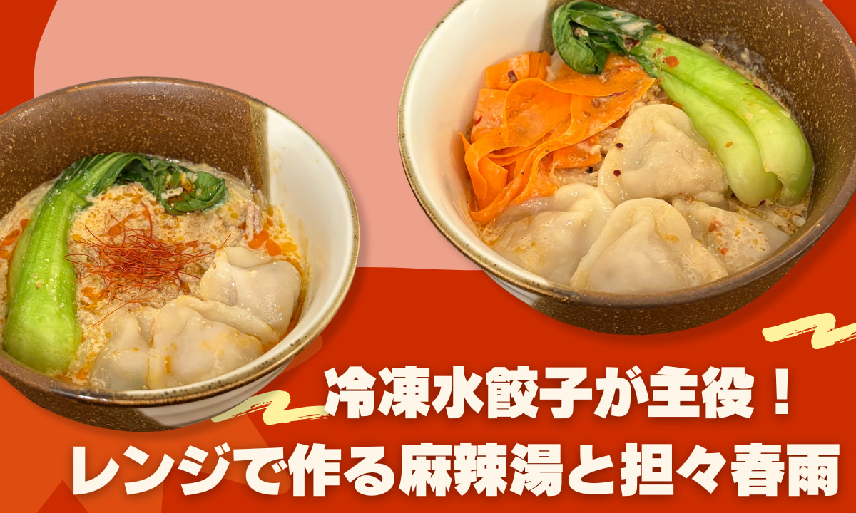 2025年の新語・流行語大賞にノミネートされた「麻辣湯(マーラータン)」。 流行の麻辣湯を、レンジでさくっと作ってみませんか? 主役は大阪王将 ぷるもち水餃子。スープのうまみを吸って満足感もしっかり♪ 同じ具材で作るレンジ担々春雨のレシピもご紹介します! レンジで簡単!冷凍水餃子入り麻辣湯 レンジで作れる麻辣湯レシピ。冷凍水餃子を入れるだけでボリュームUP! 材料(1人前) 大阪王将 ぷるもち水餃子…5個(凍ったまま) 春雨…30g 青梗菜…1/2株(食べやすく切る) もやし…1袋 人参…1/2本 無調整豆乳…150ml(※後入れ) 水…150ml 糸唐辛子…ひとつまみ(仕上げ用) スープの素 鶏がらスープの素…小さじ1 醤油…小さじ1 砂糖…小さじ1/2 おろしにんにく…少々 麻辣醤…小さじ2(※代用は下記参照) 作り方 深めの耐熱ボウルに水・スープの素を入れて混ぜ、凍ったままのぷるもち水餃子、春雨、青梗菜、もやし、人参を入れ、ふんわりラップする。 600W 4分加熱。いったん取り出して全体を混ぜ、再びラップをする。 600W 2〜3分加熱(野菜に8割ほど火が通ればOK)。 無調整豆乳150mlを“後入れ”して混ぜる。ラップをしないで600W 約60秒、沸騰させない程度に温める。 器に盛り、お好みで糸唐辛子をのせて完成!お好みで追い花椒やラー油をどうぞ♪ ポイント 豆乳は沸騰すると分離&吹きこぼれやすいので要注意! レンジ加熱は一度止めて混ぜる→再加熱でムラなく加熱できます。 レンジは容器と食材量で火の通りが変わるので、様子を見て10〜20秒ずつ追加してください。 辛さはお好みで調整してください。 麻辣醤がない時は 甜麺醤 小さじ1+豆板醤 小さじ1/2+ラー油 小さじ1 ※辛さは豆板醤、ラー油で調整してください。 他にもおすすめの麻辣湯具材 メイン:お肉、海老、イカ きのこ:えのき、しめじ、舞茸 野菜:豆苗、白菜、キャベツ、パプリカ、ミニトマト、ニラ トッピング:パクチー、白髪ねぎ、砕いたナッツ 余った麻辣醤、どうする? 麻辣湯でしか聞かない麻辣醤…。 余ってしまった場合には、そのまま水餃子にかけてしまうのもオススメです♪ ※麻辣醤によっては辛いので、お好みで調整してください! レンジで簡単!冷凍水餃子入り担々春雨 麻辣湯で具材が余ってしまった! そんなときには、担々春雨もオススメです♪ 材料(1人前) 大阪王将 ぷるもち水餃子…5個(凍ったまま) 春雨…30g もやし…1パック 青梗菜…1/2株(食べやすく切る) 合いびき肉…60g(豚ひき肉でもOK) 糸唐辛子…ひとつまみ(仕上げ) 水…250ml 担々だれ 練りごま…大さじ1 醤油…小さじ2 砂糖…小さじ1 鶏がらスープの素…小さじ1 おろしにんにく…少々 ラー油…小さじ1〜(お好み) 作り方 深めの耐熱ボウルに水250ml・鶏がら・醤油・砂糖・にんにくを入れて混ぜ、凍ったままのぷるもち水餃子、ひき肉、春雨、青梗菜、もやしをのせ、ふんわりラップする。 600W 5分加熱→取り出して全体をよく混ぜる(ひき肉をほぐす)。 さらに600W 2〜3分加熱(春雨が透きとおり、ひき肉に火が通ればOK)。 練りごま・ラー油を加えて混ぜ、器に盛る。糸唐辛子をのせて完成! ポイント 練りごまは最後に加えるとダマになりにくく、香りも立ちます! レンジ加熱は一度止めて混ぜる→再加熱でムラなく加熱できます。 レンジは容器と食材量で火の通りが変わるので、様子を見て10〜20秒ずつ追加してください。 まとめ 話題の麻辣湯も、家庭で再現すればお店に並ばなくてOK! 思い立ったらすぐ作れて、ぷるもち水餃子で満足感もしっかり出せます。 さらに、いろんな具材を入れられるから飽きずに、野菜がたっぷり摂れるのもうれしいポイント♪ 担々春雨にチェンジして気分転換も◎。 ぜひ試してみてくださいね♪