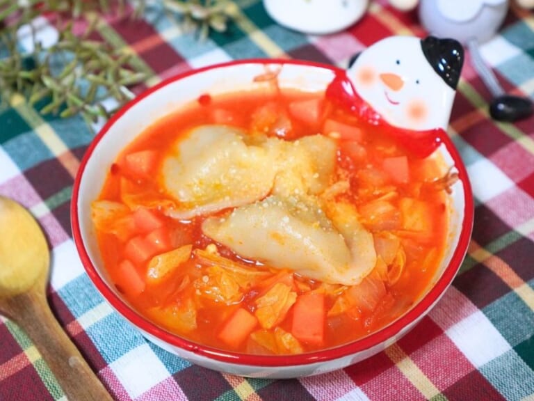 大阪王将 ぷるもち水餃子にトマトの旨味と酸味が染みわたる、ヘルシーなクリスマススープです。