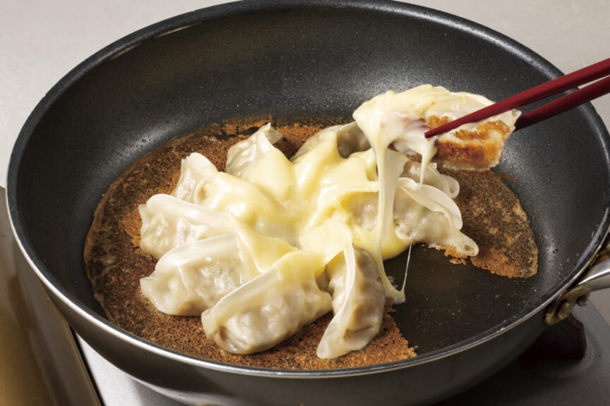 2. とろけるチーズのまろやかさ: 今回はスライスチーズを添付。辛い餃子と一緒にスライスチーズを溶かせば、辛さがまろやかになり、これまでにない新しい食感と味わいになります。